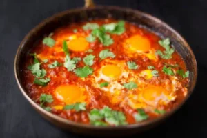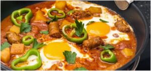 Plat populaire et savoureux de la cuisine tunisienne, l’ojja merguez est un ragoût à base de tomates, d’œufs et de merguez épicées, relevé d’ail, de piment et d’épices traditionnelles. Riche en protéines et en énergie, elle offre un goût intense et réconfortant, symbole de générosité, de convivialité et du savoir-faire culinaire tunisien.